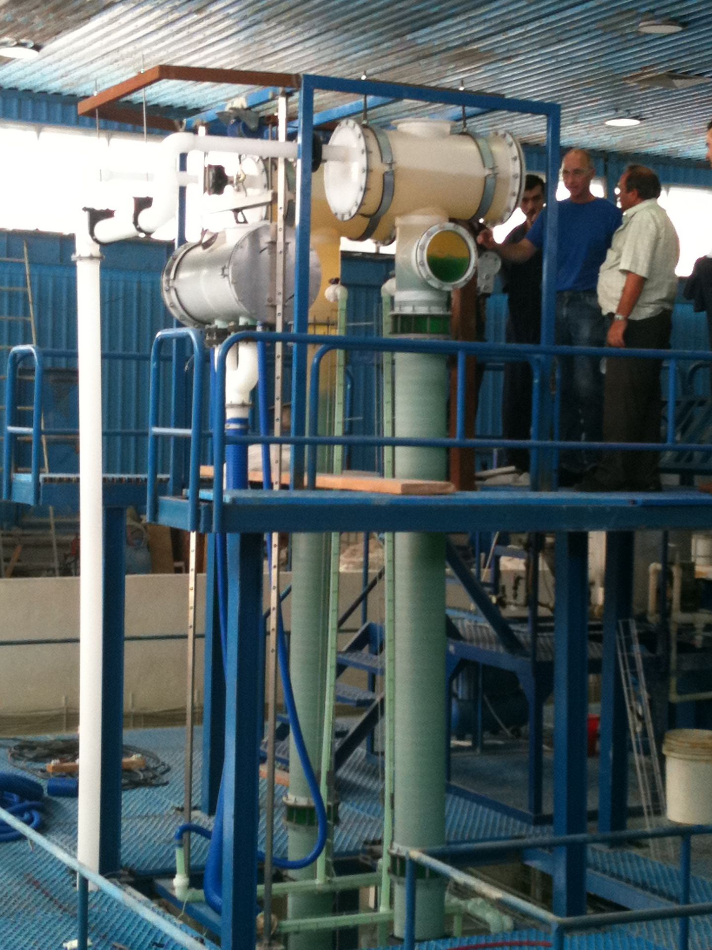 The pulsed column - industrial pulsed sieve plate twin column arrangement used in solvent extraction. The pulses are swinging like a gyratory movement between two columns, giving low energy input and smooth operation.